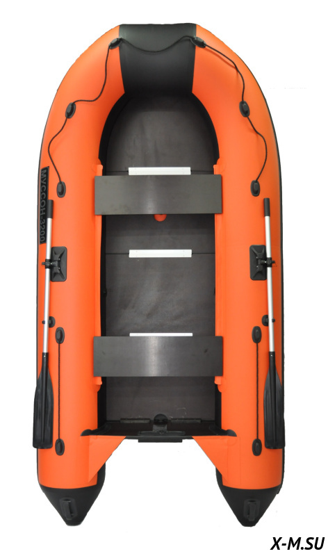 Муссон 3200 СК - безопасна, один случайный прокол может остаться даже незамеченным. Большой баллон (43 см) разделен на три изолированных надувных элемента. В комплексе с надувным килем такая конструкция обеспечивает повышенную плавучесть и грузоподъемность. Каждая камера снабжена своим воздушным клапаном. При повреждении одного надувного элемента судно обеспечит Вам безопасность за счет остальных. Хотя повредить современный ПВХ проблематично. И днище, и борта Муссон 3200 СК выполнены из многослойной ткани плотностью 900 г/м с армированием. Материал устойчив к проколам и порезам, не выгорает на солнце, остается эластичным на морозе, не преет и не гниет от тепла и сырости.